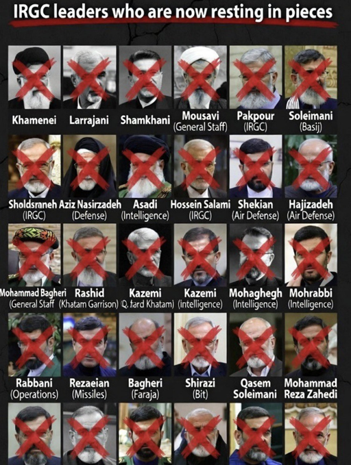 圖2:社群媒體上瘋傳伊朗統治階層逐一遭美以清剿的宣傳圖。資料來源:La Derecha Diario Israel, X, Mar