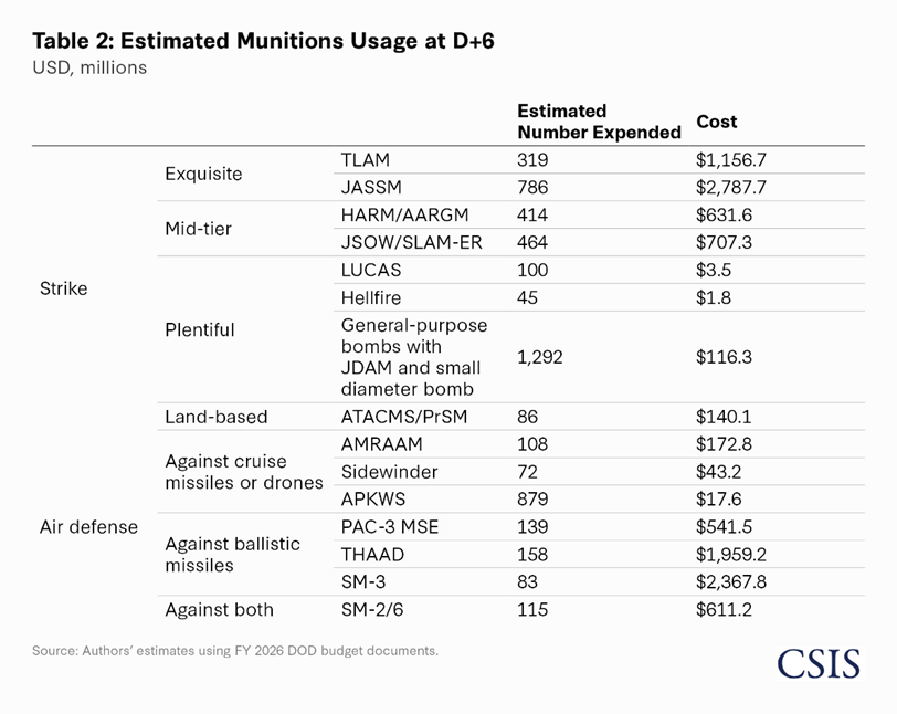 圖1:美軍對伊朗打擊的彈藥消耗與成本計算。資料來源:Mark F. Cancian and Chris H. Park, “Iran